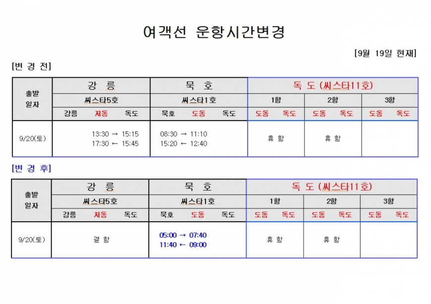 여객선 운항에 차질이 없도록 조치하 여 주시기 바랍니다.