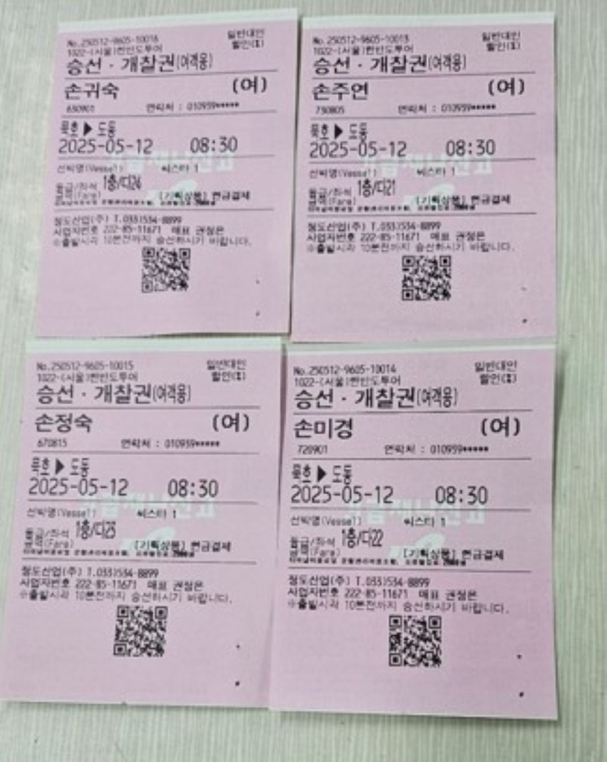 동해시 묵호항여객터미널 주차장 도착후 아침식사(청송식당) 를 합니다 묵호항여객선터미널도착후 배표받는방법 대합실1층 터미널매점 에서 에서 대표자 이름.인원 말씀후 배표받으세요 배표담당자:010-4258-5013 친절과정성을 다해 고객님을 모시겠습니다 서울--묵호 셔틀버스 새벽샌딩자: 010-3137-1312 ■.준비물:신분증 꼭 지참하세요 신분증 미지참시에는 여객선 승선이 거절됩니다 핸드폰 카메라 로 찍은 신분증 절대 승선불가 합니다 울릉도독도전문회사 서울한반도투어 주말 휴일.야간상담가능 TEL:02-777-8883