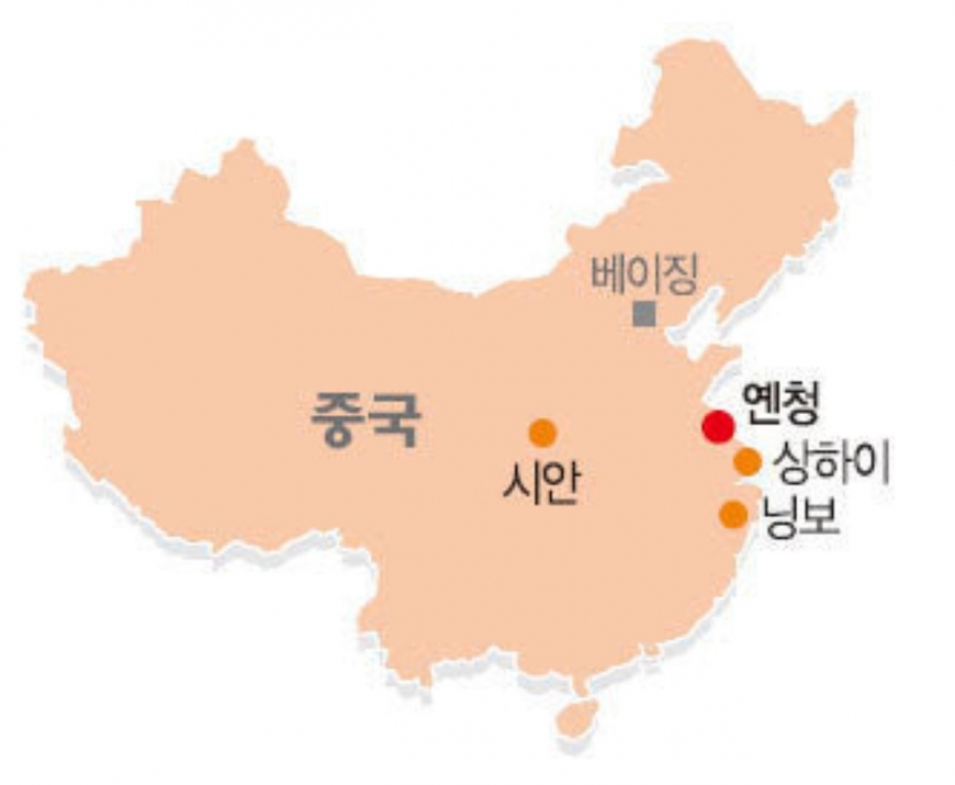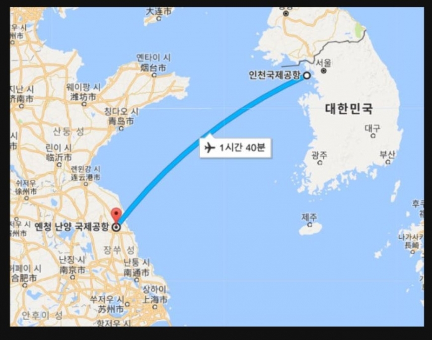 인천공항출발...............중국 장쑤성 염성( 옌청)행 항로