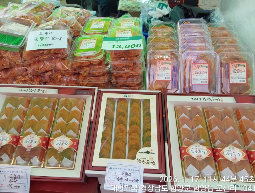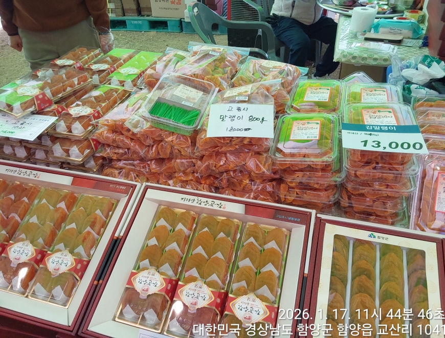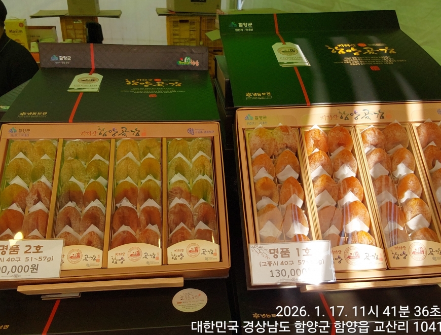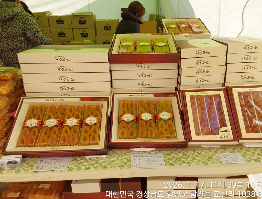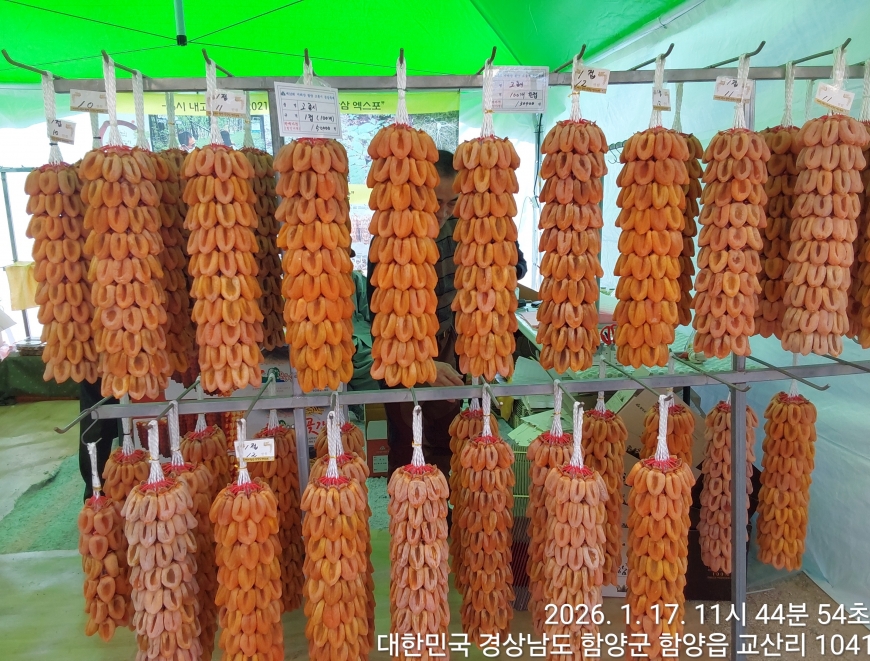 함양꽂감축제장 이모저모들... ■.함양꽃감축제 위치:경상남도 함양군 함양읍 교산리 1041 상림공원 고운광장 축제기간 : 2026. 1. 16.(금) ~ 1. 18.(일) (3일간) 곶감 신년콘서트- 2026년 1월 17일(토) 장소: 특설무대 초대가수: 이찬원, 현진우 등