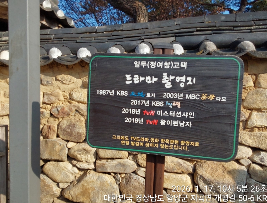 ■.함양 개평마을 (함양 일두고택) 주소 : 경상남도 함양군 지곡면 개평길 50-13 위치:경상남도 함양군 지곡면 개평길 35-9 (개평길59) 개평마을 함양의 중심에 위치한 개평마을은 조안동 우함양이라 불릴 정도로 많은 유학자를 배출한 영남지역의 대표적 선비마을로 조선조 오현중 한분인 일두 정여창 선생의 고향이기도 하다.
