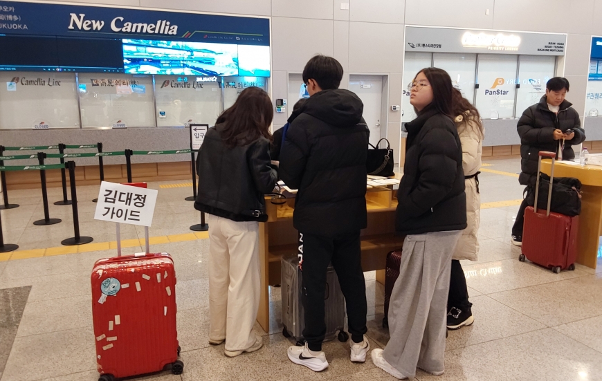 부산국제여객선터미널도착후 가이드이름을 찾으신후 미팅후 배표를 받습니다