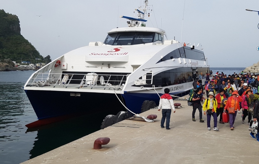 ■.2025년10월16일(목)서울.경기.인천↔강릉시(강릉항) 여객터미널 배차정보 (강릉항) 여객선 출항 시간 여객선명:(씨스타5호):정원:438명 ■.강릉(08:00분)→울릉(저동):(씨스타5호) ■.울릉(저동) (13:00분) →강릉:(씨스타5호) (제1호차) ■.영등포신세계백화점정문 새벽:03:00 ■.서울시청역2번출구 새벽:03:30 ■.잠실역4번출구 직진100미터 롯데마트정문 새벽:04:00 상기지역외 셔틀버스 미운행 (예약손님없음) 입니다 버스탑승시에는 두레고속관광 버스 를 찾으신후 예약자대표자이름 .인원수 말씀후 승차하세요 ■.셔틀버스 (강릉항여객선터미널):최소출발인원안내 서울출발 :영등포(2명).서울시청역(2명).잠실역(2명):확정 경기권 :(안양(10명).수원(10명):출발인원:확정 인천지역 :(송내역(8명).부평역(8명):출발인원:확정
