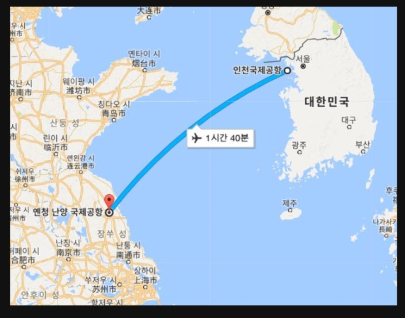 옌청(YNZ) 난양 국제공항 출발(OZ338) (기내식 1회 제공) |
